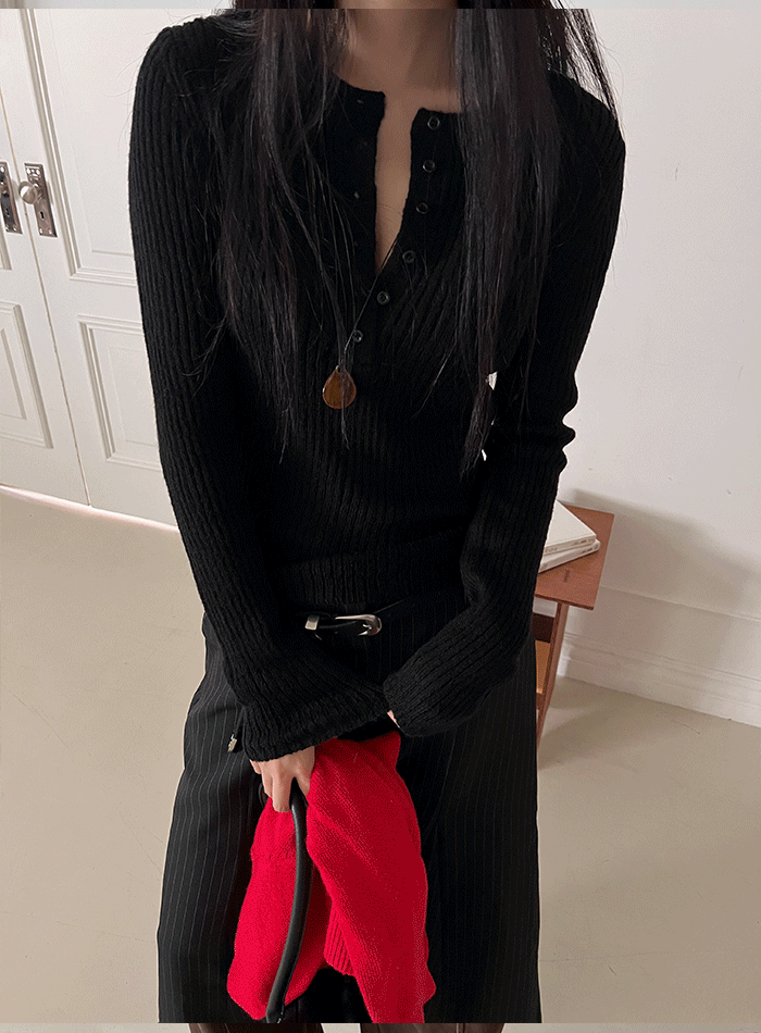 버니로우의 헨리넥 슬림 니트 상품입니다. 현재 13% 할인 중으로, 28,000원에 구매 가능합니다.