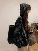 쉬인의 여성 스트라이프 드롭 숄더 긴소매 드로스트링 후드 스웨터, 가을/겨울 니트 풀오버 가을 상품입니다. 현재 가격은 18,590원입니다.