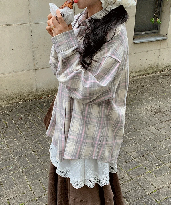 에이비글의 [2컬러🍭] 르베이 체크 포켓 오버핏 셔츠 타탄 루즈핏 빅사이즈 남녀공용 가을 간절기 롱 남방 상품입니다. 현재 16% 할인 중으로, 44,500원에 구매 가능합니다.