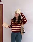 메이블루의 프레피 스트라이프 카라니트 상품입니다. 현재 가격은 42,000원입니다.