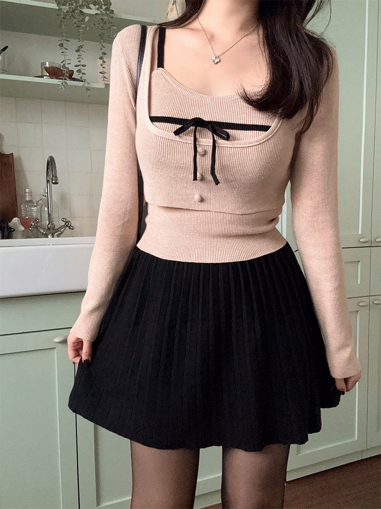 멀리뉴의 위시 배색 끈 나시 니트 세트 상품입니다. 현재 10% 할인 중으로, 28,800원에 구매 가능합니다.