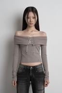 시너진의 EYELET OFF SHOULDER TOP BEIGE 상품입니다. 현재 가격은 64,000원입니다.
