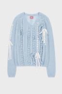 시눈의 Crochet Ribbon Tie V-Neck Pullover (Light Blue) 상품입니다. 현재 가격은 198,000원입니다.