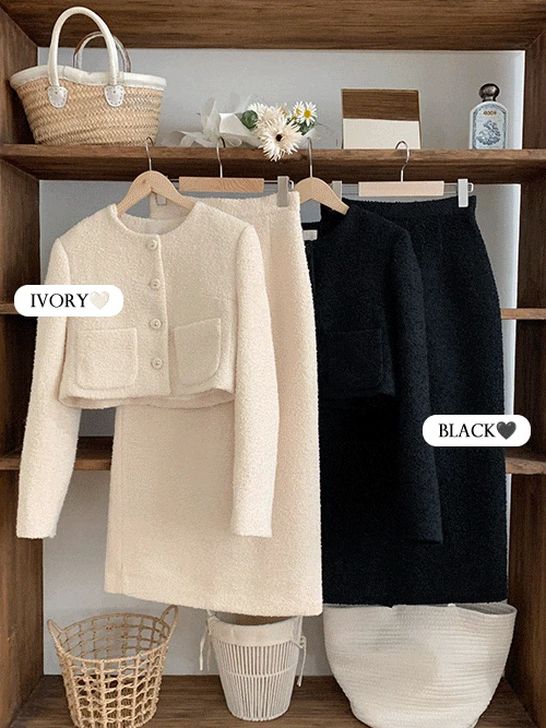 정이네의 [비율보정핏💕/겨울하객룩/피로연룩] 데이 트위드 투피스 셋업 세트 하객룩 상견례룩 상품입니다. 현재 가격은 152,900원입니다.