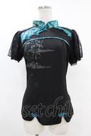 Ozz oneste / 和チャイナレース切替トップス  黒×緑 H-25-07-12-1054-OO-TO-KB-ZT023