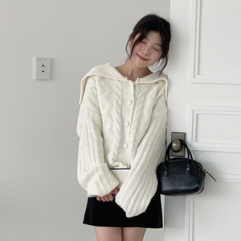 유어아운스퀘어의 [울니트🧤] 멜티 세일러 모헤어 울 니트 카라 가디건 CD / 겨울 도톰 여리핏 데이트룩 상품입니다. 현재 21% 할인 중으로, 43,000원에 구매 가능합니다.