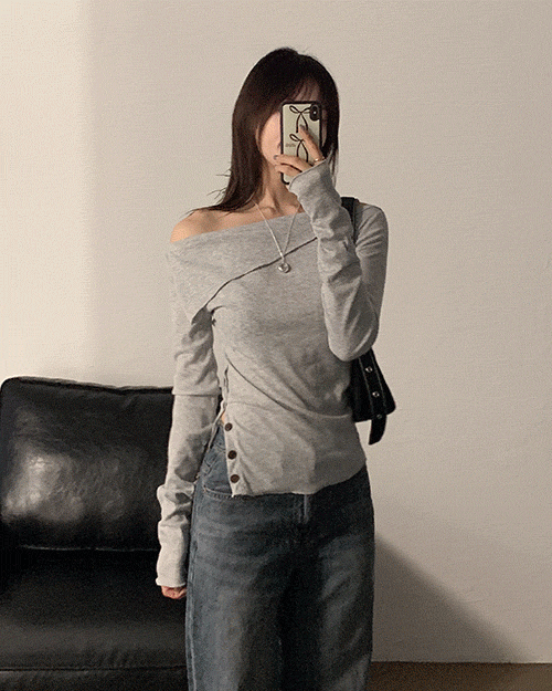 노배드웨더의 페일 슬릿 버튼 오프숄더 티 (1color) 상품입니다. 현재 가격은 26,000원입니다.