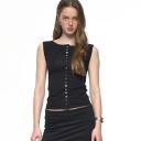 투머치택스의 MOTHER OF PEARL BUTTON SLEEVELESS TOP (BLACK) 상품입니다. 현재 가격은 92,000원입니다.