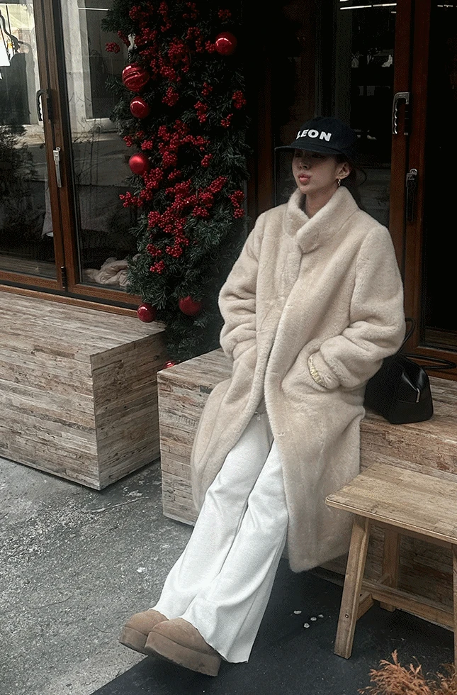 선데이무어의 플러시 롱 퍼 코트 상품입니다. 현재 가격은 128,000원입니다.