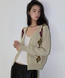 미치코런던의 아가일 메리노 울 가디건 세이지 카키 상품입니다. 현재 10% 할인 중으로, 64,800원에 구매 가능합니다.