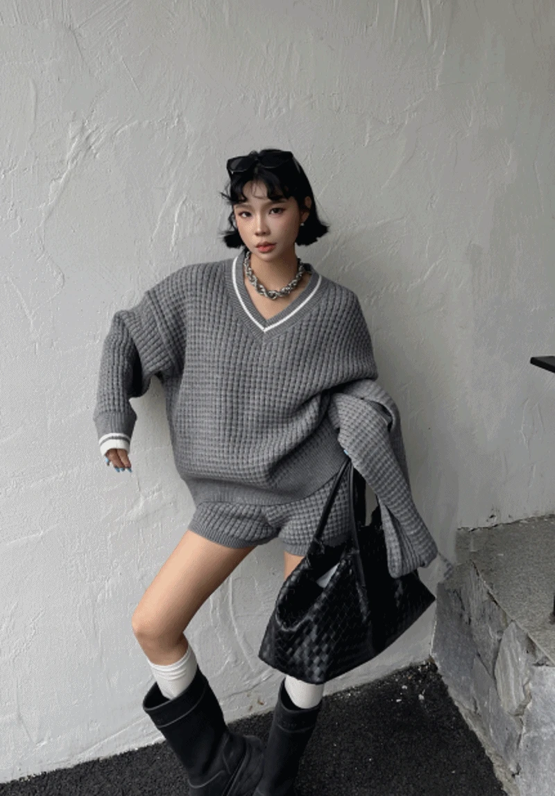 리마인드 의 [머플러set]와플 브이넥 니트 숏팬츠 세트(8098) 상품입니다. 현재 5% 할인 중으로, 47,310원에 구매 가능합니다.