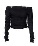 오아이때의 슬림핏 링 디테일 오프숄더 언발 긴팔티 상품입니다. 현재 가격은 29,900원입니다.