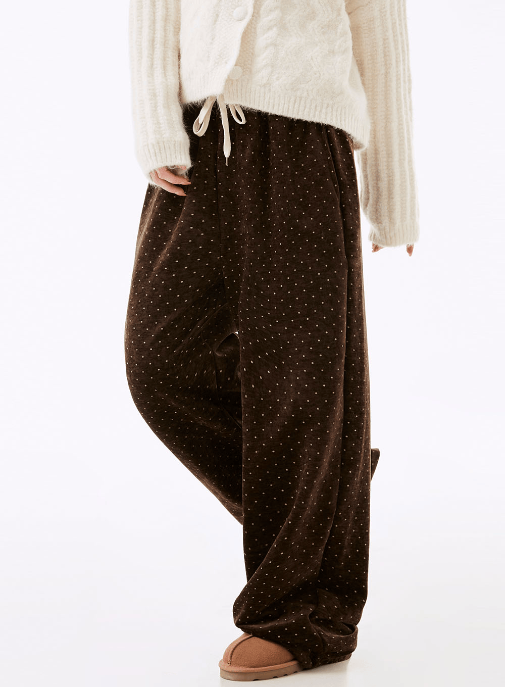 네비의 트에브 도트 벨벳 와이드 밴딩팬츠 상품입니다. 현재 가격은 38,000원입니다.