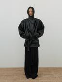 High Neck Belted Leather Jacket (black)
