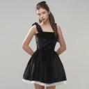 Ribbon Couture Velvet Mini Dress - BLACK & WHITE