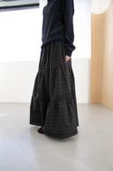 오무수히 cotton check shirring long skirt(2colors)