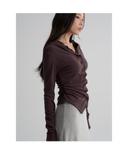 후드 셔링 카디건  브라운