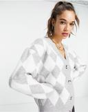 탑샵의 Topshop 그레이 말 소재의 토널 아가일 니트 카디 상품입니다. 현재 40% 할인 중으로, 36,000원에 구매 가능합니다.