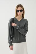 SLEEVE-CUT FINE COTTON V NECK SWEATER - MELANGE GREY (W)