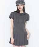 로즈 플리츠 미니 원피스 차콜