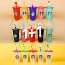 스타벅스의 1+1 2021 스타벅스 리유저블 모음 X 귀여운 빨대마개 콜라보 세트 빨대 콜드컵 710ml 상품입니다. 현재 가격은 21,000원입니다.
