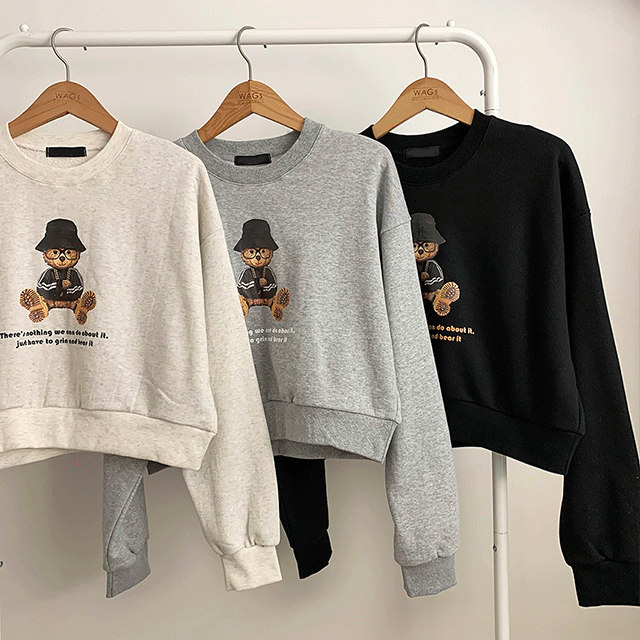 베일리룩의 [ 주문폭주 ! ] 크롭 베어 힙한 곰돌이 쭈리 맨투맨 상품입니다. 현재 13% 할인 중으로, 20,500원에 구매 가능합니다.