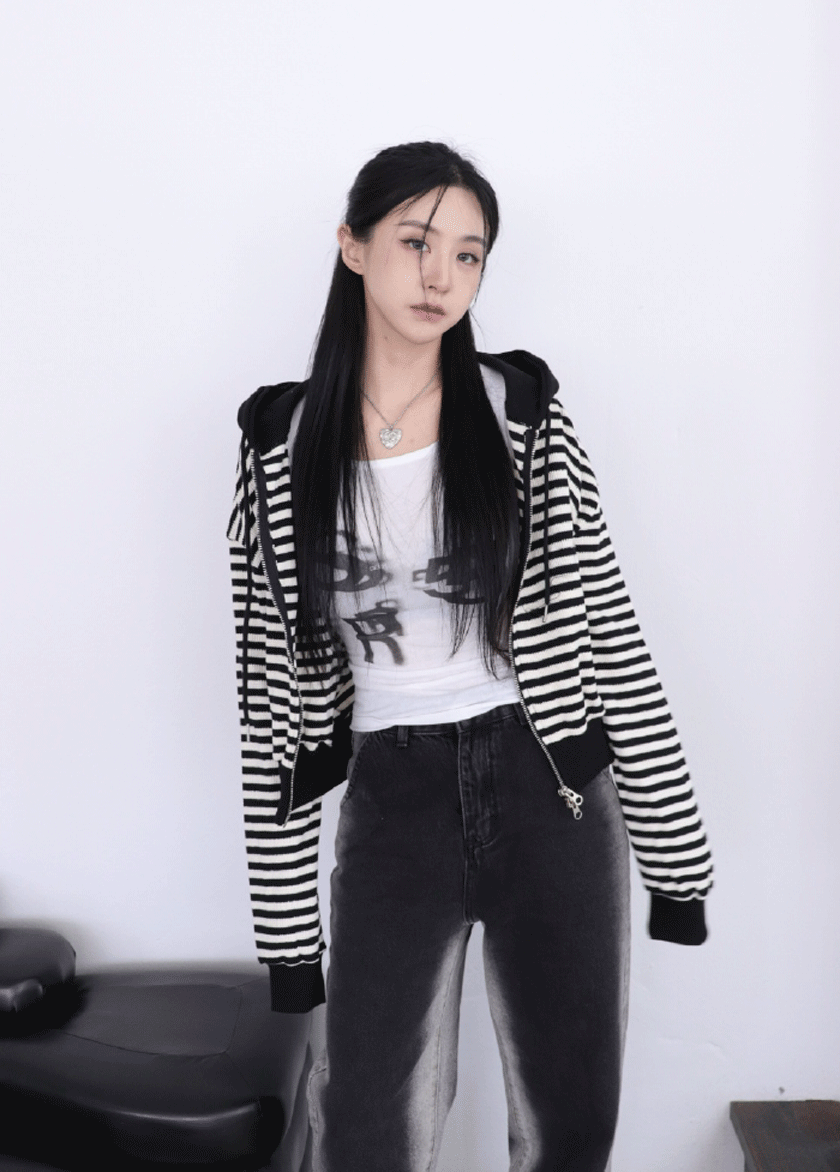온어시스의 스트라이프 후드 집업 상품입니다. 현재 14% 할인 중으로, 48,600원에 구매 가능합니다.