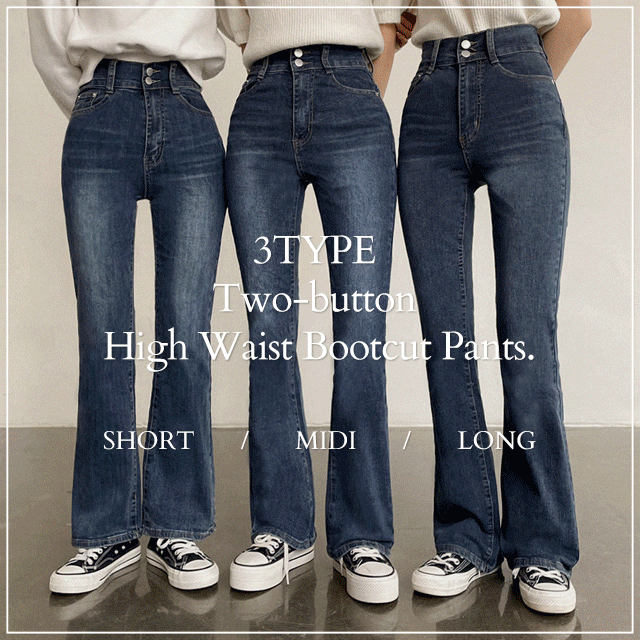 더핑크의 [기장선택/~2XL/레전드핏] 리미 투버튼 하이웨스트 스판 부츠컷 데님팬츠 (2color) 상품입니다. 현재 21% 할인 중으로, 22,300원에 구매 가능합니다.