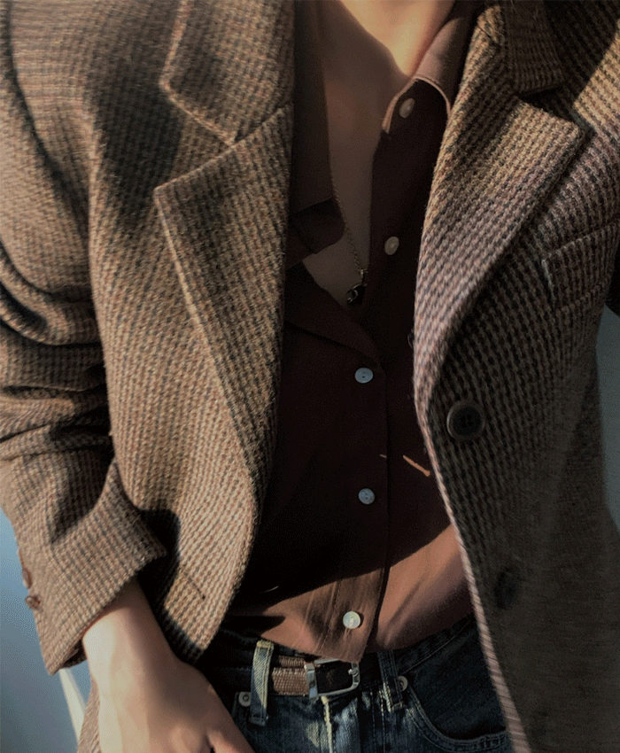이프댓의 모티브 크롭 카라 배색 싱글 버튼 울 자켓(브라운) 상품입니다. 현재 가격은 152,630원입니다.