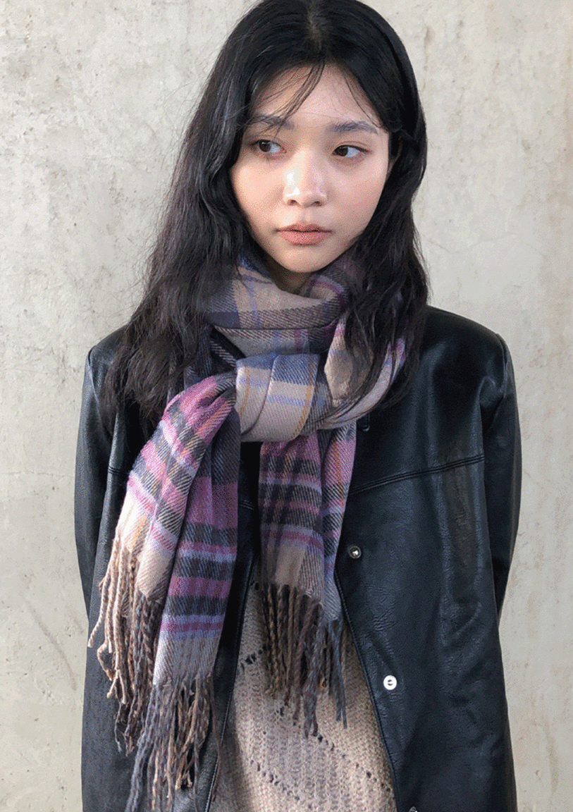 귀리의 바이올렛 체크 머플러 상품입니다. 현재 가격은 23,000원입니다.
