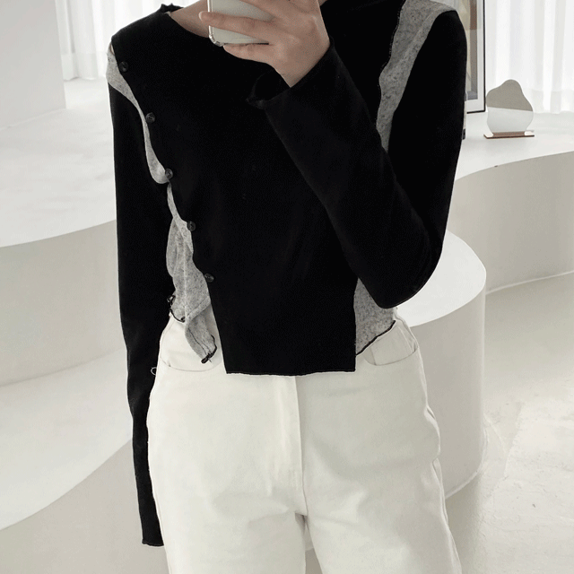 듀에뜨의 [SPRING] 크롭 배색 버튼티 (2color) 상품입니다. 현재 가격은 29,500원입니다.
