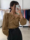 바이별마켓의 멜즈 언발 사선 핀턱 퍼프 블라우스 (2col) 상품입니다. 현재 가격은 41,000원입니다.