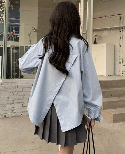 파라다이스키스의 오버핏 뒷트임 집업 셔츠 블라우스 상품입니다. 현재 35% 할인 중으로, 19,700원에 구매 가능합니다.