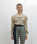 니어앤디어의 퍼프 슬리브 체크 셔츠 퍼플 상품입니다. 현재 가격은 109,000원입니다.