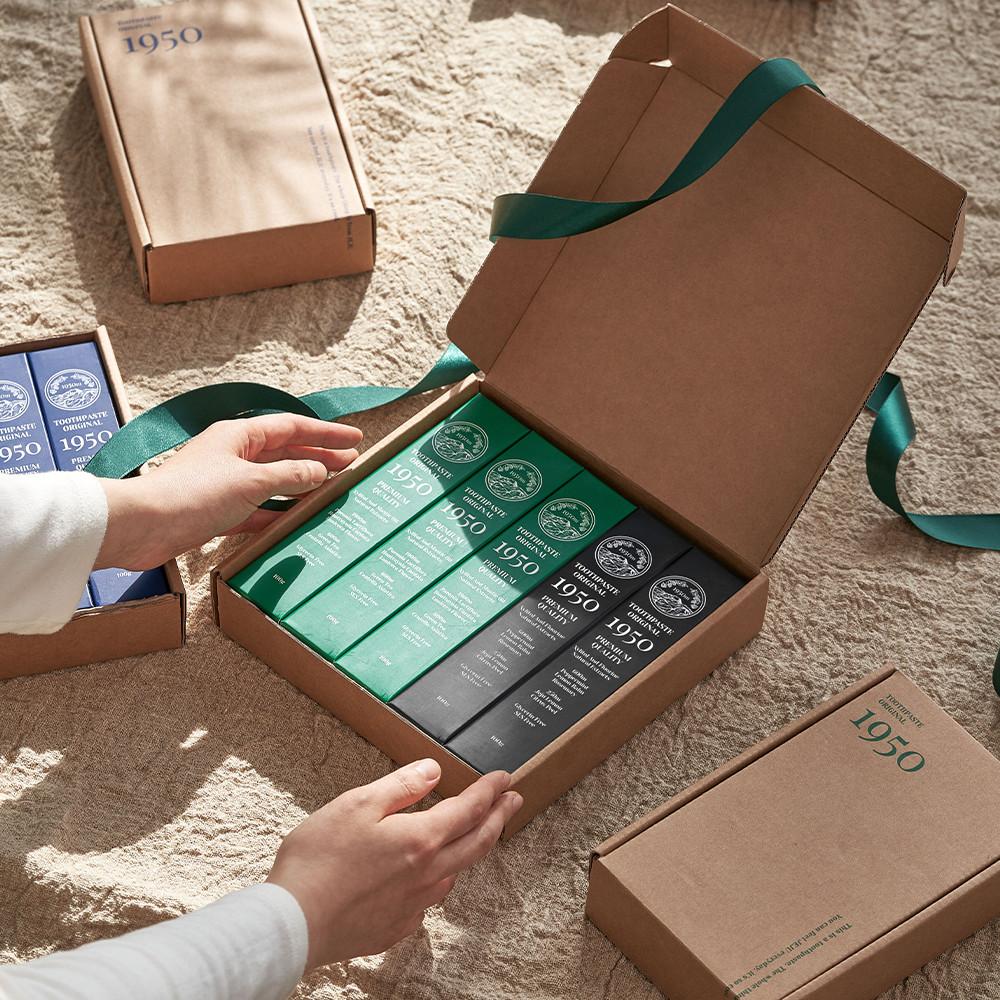 1950의 1950 제주 오가닉 치약 대용량 할인구성 (그린, 블루, 블랙) 상품입니다. 현재 12% 할인 중으로, 39,900원에 구매 가능합니다.