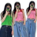장울리의 리본 스트랩 타올 테리 배색 크롭 민소매 나시 상품입니다. 현재 가격은 18,900원입니다.