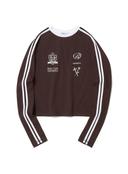 파르티멘토의 [WOMEN] FITTED STRIPE FOOTBALL JERSEY TOP_BROWN 상품입니다. 현재 가격은 85,000원입니다.