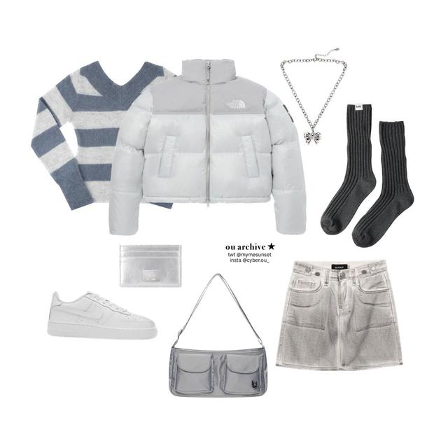 🏂 노스페이스 - (W) The North Face White Label Novelty Nuptse Down Jacket Ice Gray