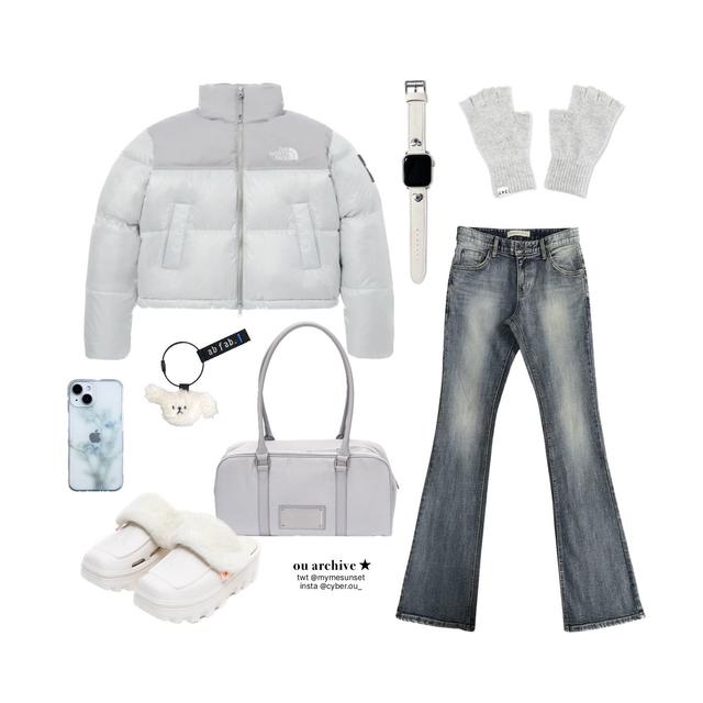 ➋ 바지 : 보헤미안서울 - boots cut denim pants in blue 케이스 : MHOM - 반투명 : 델피늄 키링 : ab fab. - 멈머 키링 ( White ) 장갑(?) : 247 Seoul - 247 FINGERLESS GLOVES [GREY] 가방 : 마뗑킴 - SPORTY TOTE BAG IN LIGHT GREY 신발 : flct - [SET] Nube fur socks & Nube mule_White 워치 줄 : EASTARGO - APPLE WATCH COMET HEART STRAP (IVORY WHITE)